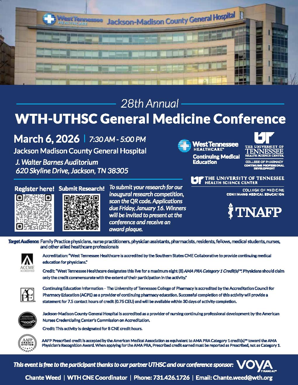 WTH-UTHSC General Medicine Conference coming up March 6, 2026 . there is a QR code to sign up for this free conference.